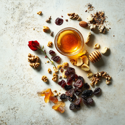 Sweet sultana, dried fruit, roasted walnuts and a drizzle of honey.